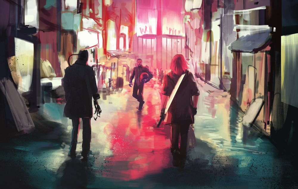 What does technology look like in this world? What has happened in recent history? What effects did those events have on the world as it exists now? What color do we associate with technology? What color do we associate with nature? Is the augmented reality similar to the matrix from Neuromancer or the metaverse from Snow Crash? What are the social dynamics like? What is the food like? What are the cops like? What does money look like? What kind of jobs are available? What’s religion like?