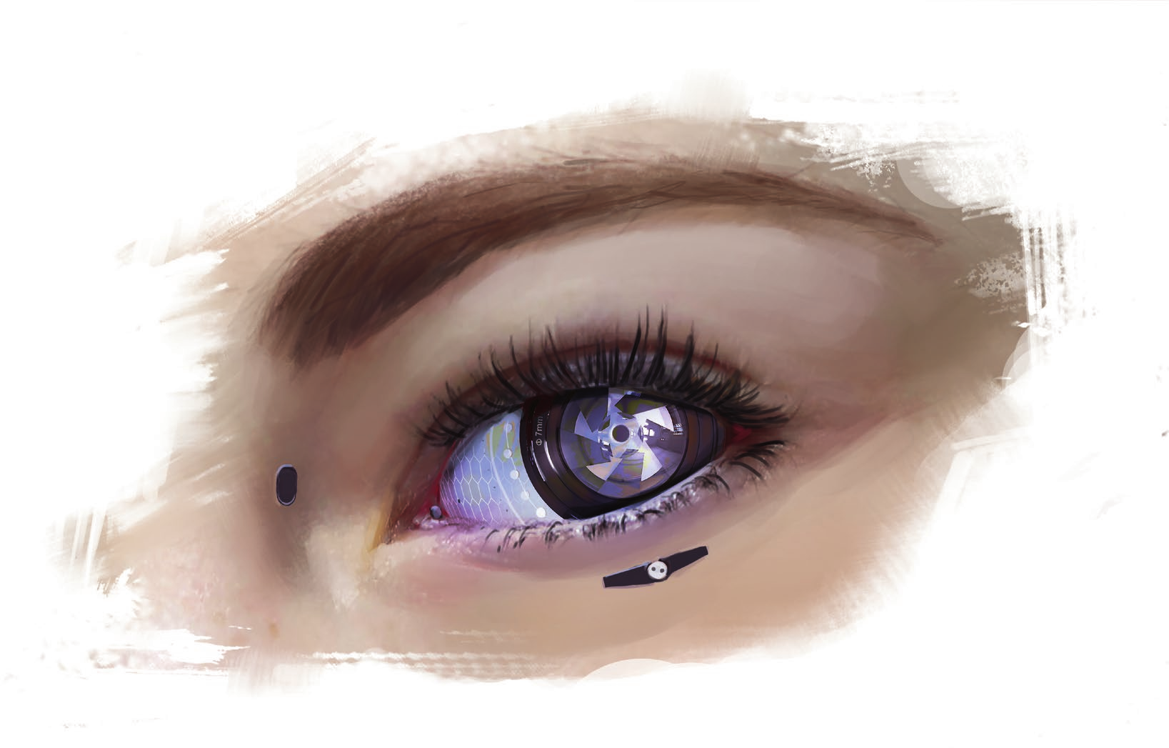 In The Veil‘s setting, what you see isn’t always real, and what’s real isn’t always what you see. The realities of the physical world are obfuscated by an ever present augmented reality that just about everyone in the world is connected to. Buildings that are bland cement slabs, in reality ,might present as knockoff Disney World caricatures of themselves with spiraling staircases and ramparts. Perhaps no one wears makeup because the digital avatar they present to the world is always in pristine condition. Advertisements might never take physical form as instead they are presented as floating billboards existing only in digital space.